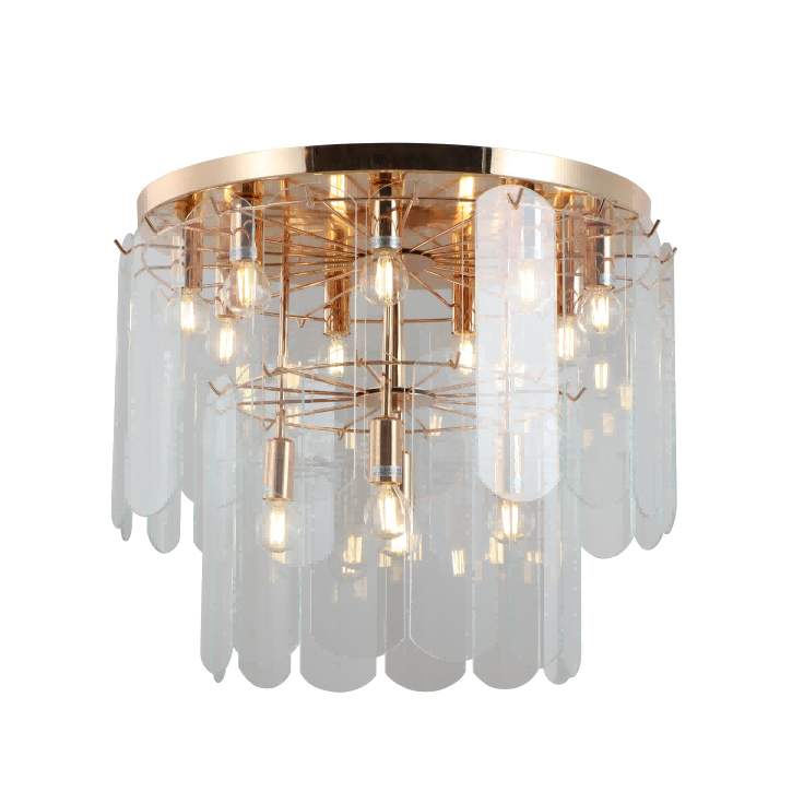 Acest puternic iluminat OEM Luxy Twiers Gold Flush Mount Chandelier este ca o operă de artă, amestecând perfect romantismul și luxul, aducând un farmec francez nesfârșit în spațiul tău de acasă. Cu straturi distincte și lumină și umbră împletită, creează un efect vizual bogat. Combină textura luxoasă a metalului cu claritatea cristalină a sticlei.