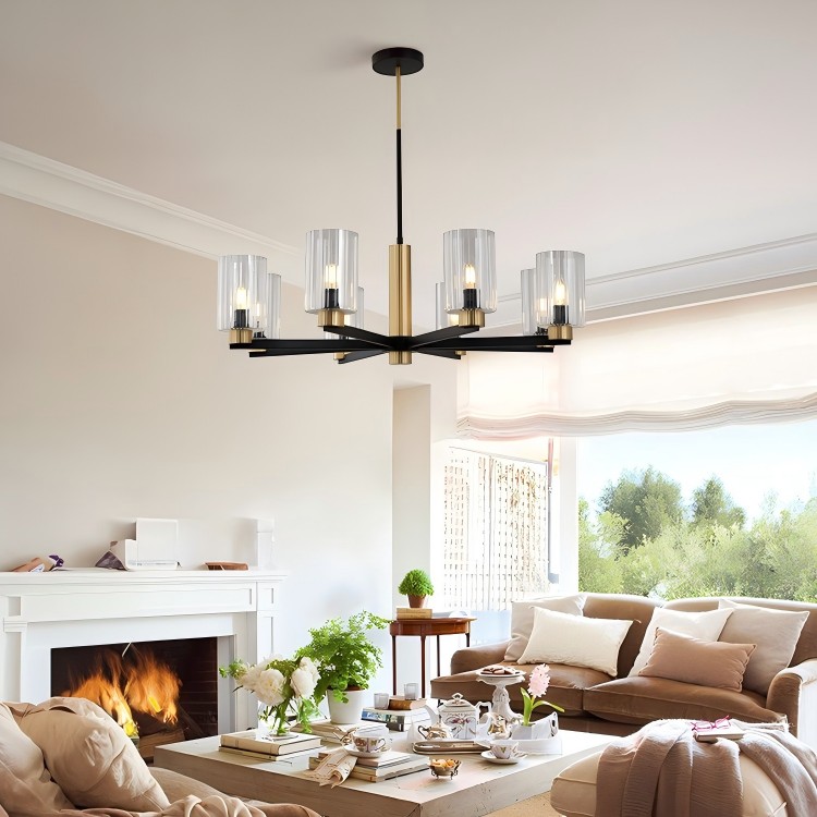Acesta este un candelabru minimalist din metal negru, proiectat inițial de Zhongshan Strong Lighting, o fabrică de export profesională din Guangdong, China. Punctul culminant al acestui design este ciocnirea inteligentă a hardware-ului negru și auriu vopsit. Atât corpul metalic al lămpii, cât și recipientele suportului lămpii prezintă caneluri rafinate. În plus, sticla suflată manual prezintă și caneluri, astfel încât sticla transparentă să reflecte o varietate de lumină. Designul general emană o estetică discretă și unificată. Noua colecție American Minimalist Black Metal Chandelier include o lampă de perete, o lampă cu pandantiv cu 3 lumini, o lampă cu pandantiv cu 5 lumini și o lampă cu pandantiv cu 8 lumini.