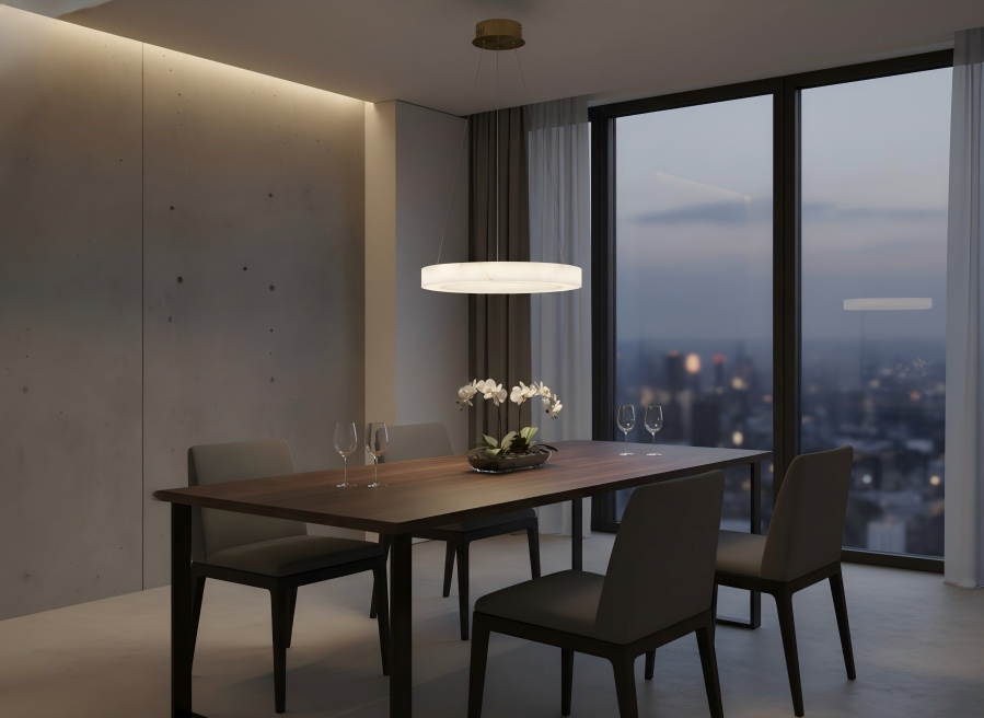Lumina cu pandantiv cu inel de alabastru, minimalist, de lux, 2026, de la Strong Lighting redefinește iluminatul interior modern prin designul său elegant și atemporal. Dispozitivul combină un cadru durabil din fier cu alabastru din rășină premium, oferind textura naturală și caldă a pietrei reale, asigurând în același timp durabilitate ușoară și performanță de lungă durată. Nuanta circulară de alabastru difuzează lumina uniform, creând o strălucire moale, fără strălucire, care ridică orice spațiu. Echipat cu o sursă de lumină LED cu CRI ridicat de 34W, acest candelabru emite lumină albă neutră de 4000K la 3400LM, obținând echilibrul perfect între luminozitate și confort pentru camere de zi, zone de luat masa, dormitoare și spații comerciale. Vine în trei opțiuni de diametru (Ø400mm, Ø500mm, Ø600mm) pentru a se potrivi cu diferite dimensiuni de încăperi, iar cablurile de oțel reglabile permit personalizarea flexibilă a înălțimii, adaptându-se la diferite înălțimi de tavan și scenarii de instalare.